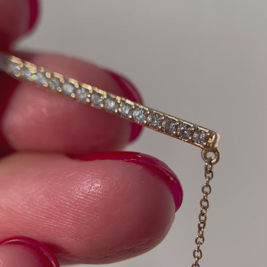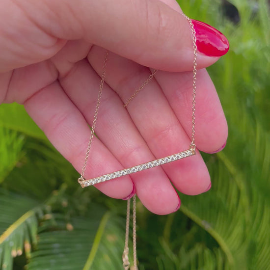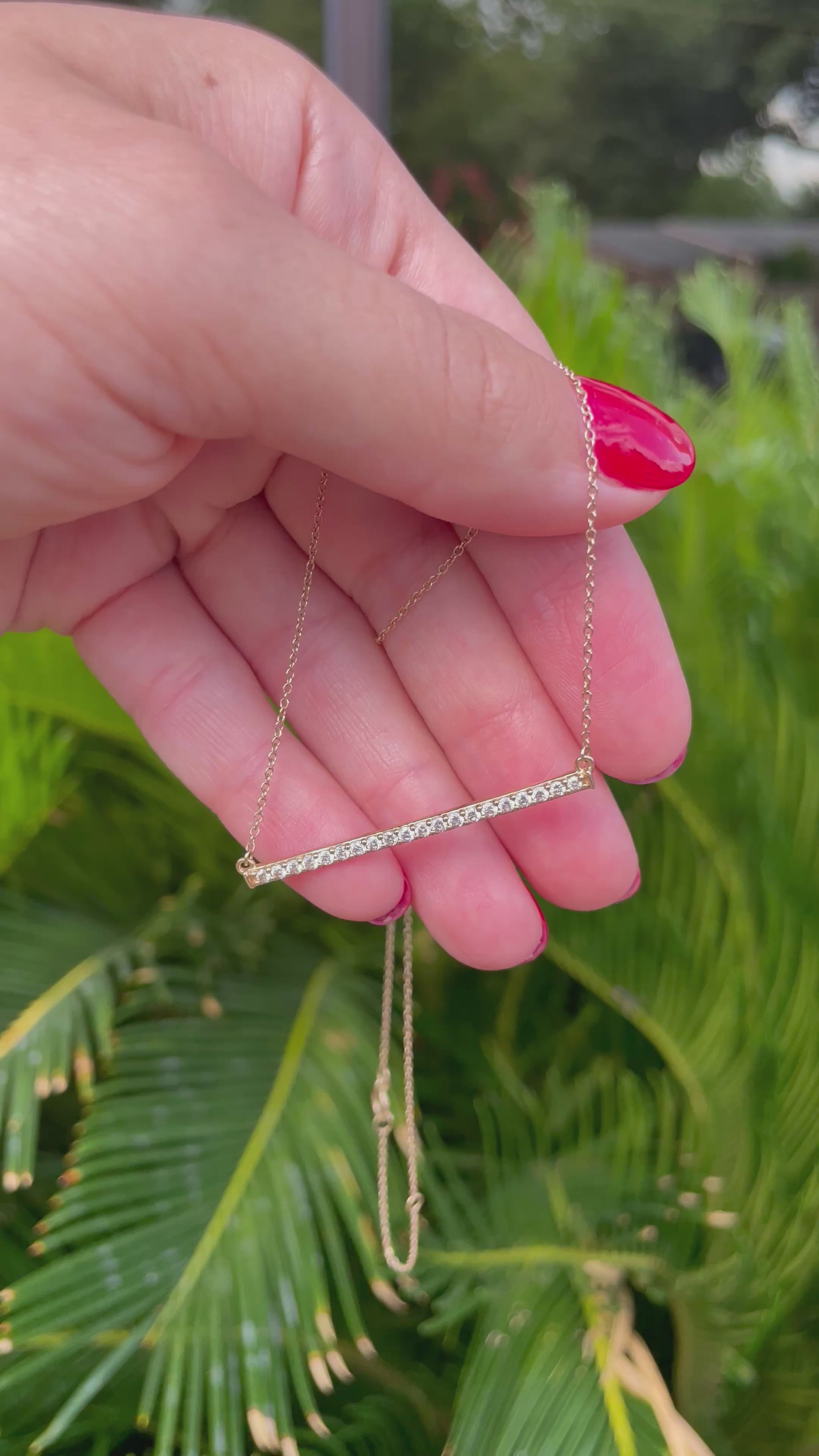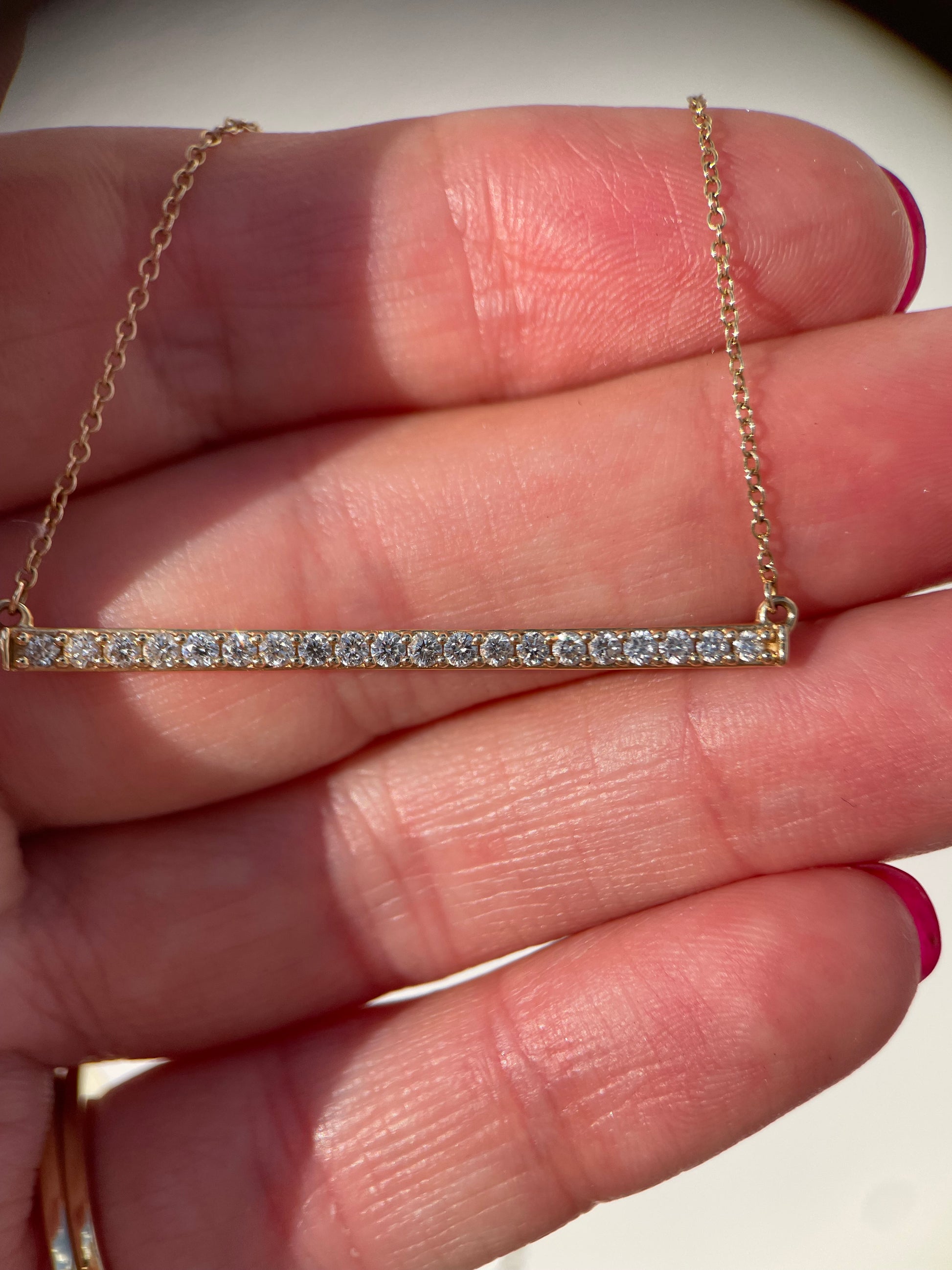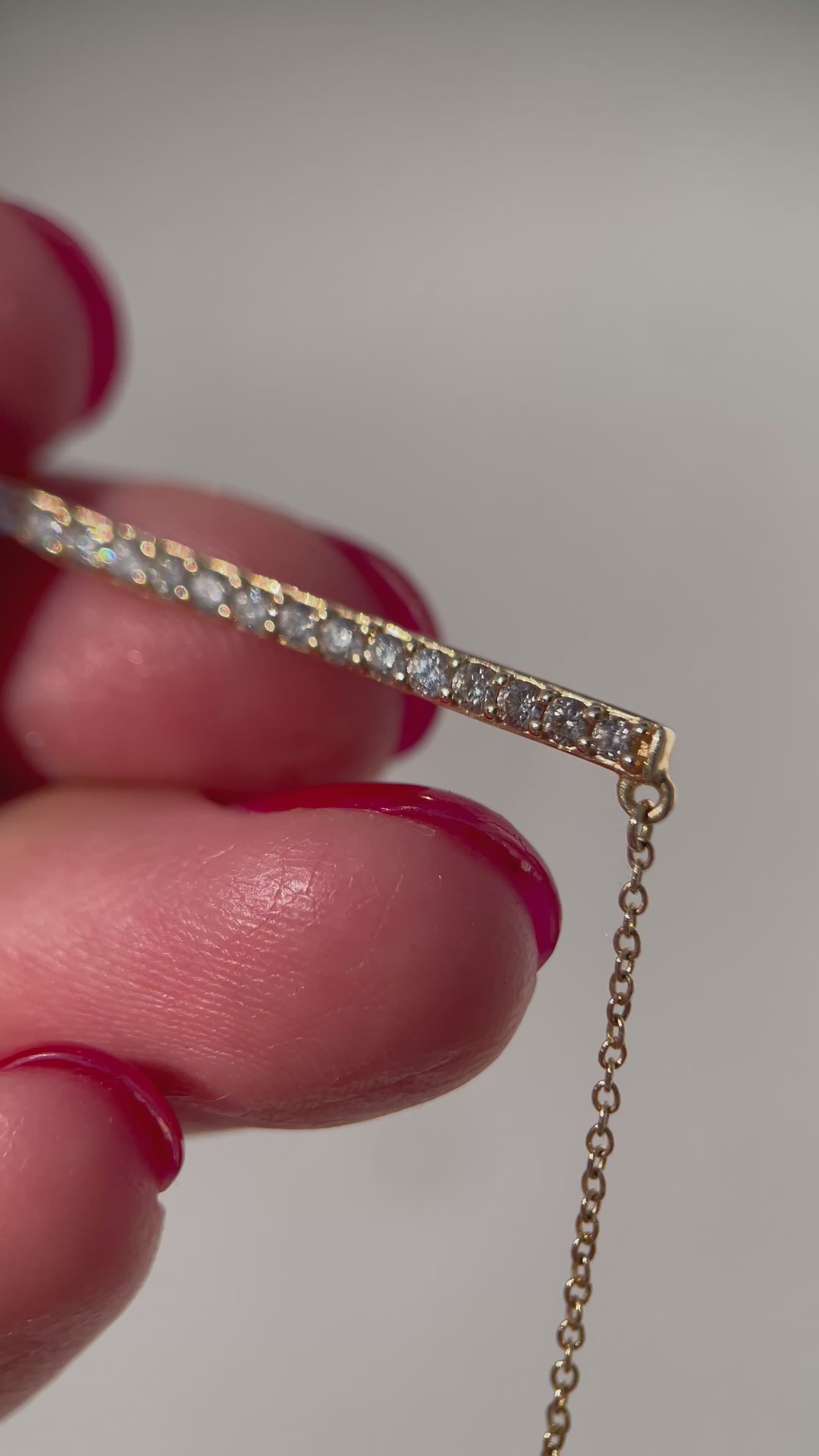 14 K Yellow Gold Diamond Bar Necklace with 20 round cut diamonds