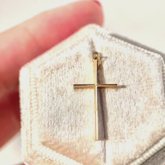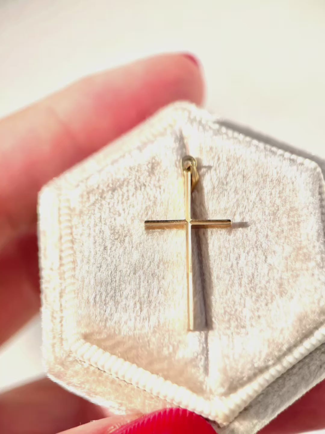 A symbol of faith and elegance, this minimalist cross pendant is crafted in luminous 14K yellow gold and designed with clean, modern lines. Its sleek, slender silhouette gives it a timeless aesthetic, ideal for both everyday wear and meaningful occasions.